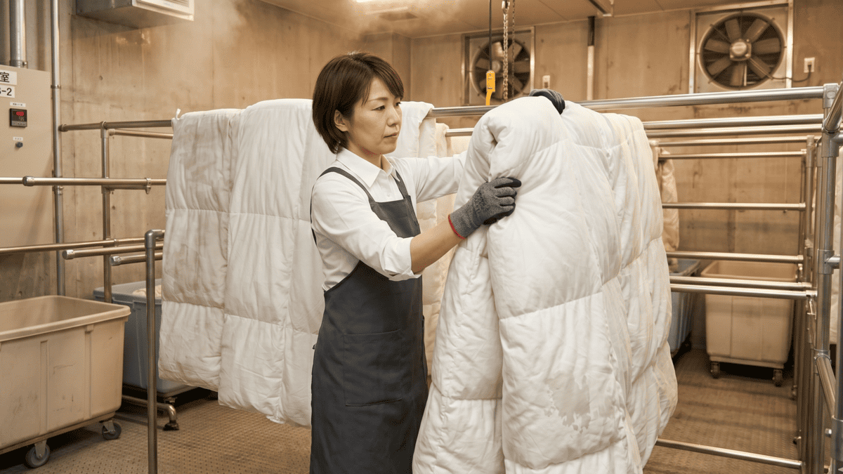 ふとんは汚れています!当店では花粉の季節などでも丸洗いが可能です。